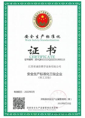 江蘇省誠信教學(xué)設(shè)備有限公司成立于2003年,是一家專注教學(xué)設(shè)備研究開發(fā)、生產(chǎn)制造、銷售服務(wù)為一體的綜合性教育、服務(wù)型企業(yè),是江蘇省教育設(shè)備行業(yè)協(xié)會會員單位、中國教育裝備行業(yè)協(xié)會會員單位,公司先后通過ISO9001國際質(zhì)量管理體系認(rèn)證、IS14001國際環(huán)境管理體系認(rèn)證、OHSAS18001職業(yè)健康安全管理體系認(rèn)證。數(shù)十年的激勵前行鑄就企業(yè)優(yōu)質(zhì)的產(chǎn)品品質(zhì)和服務(wù)質(zhì)量。